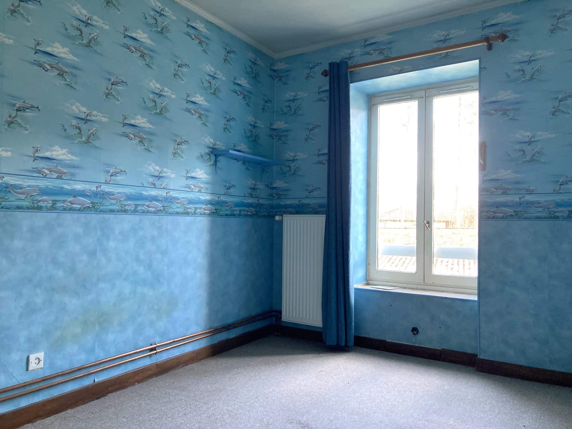 A l’étage le palier dessert 3 chambres et une salle de bains avec toilettes.